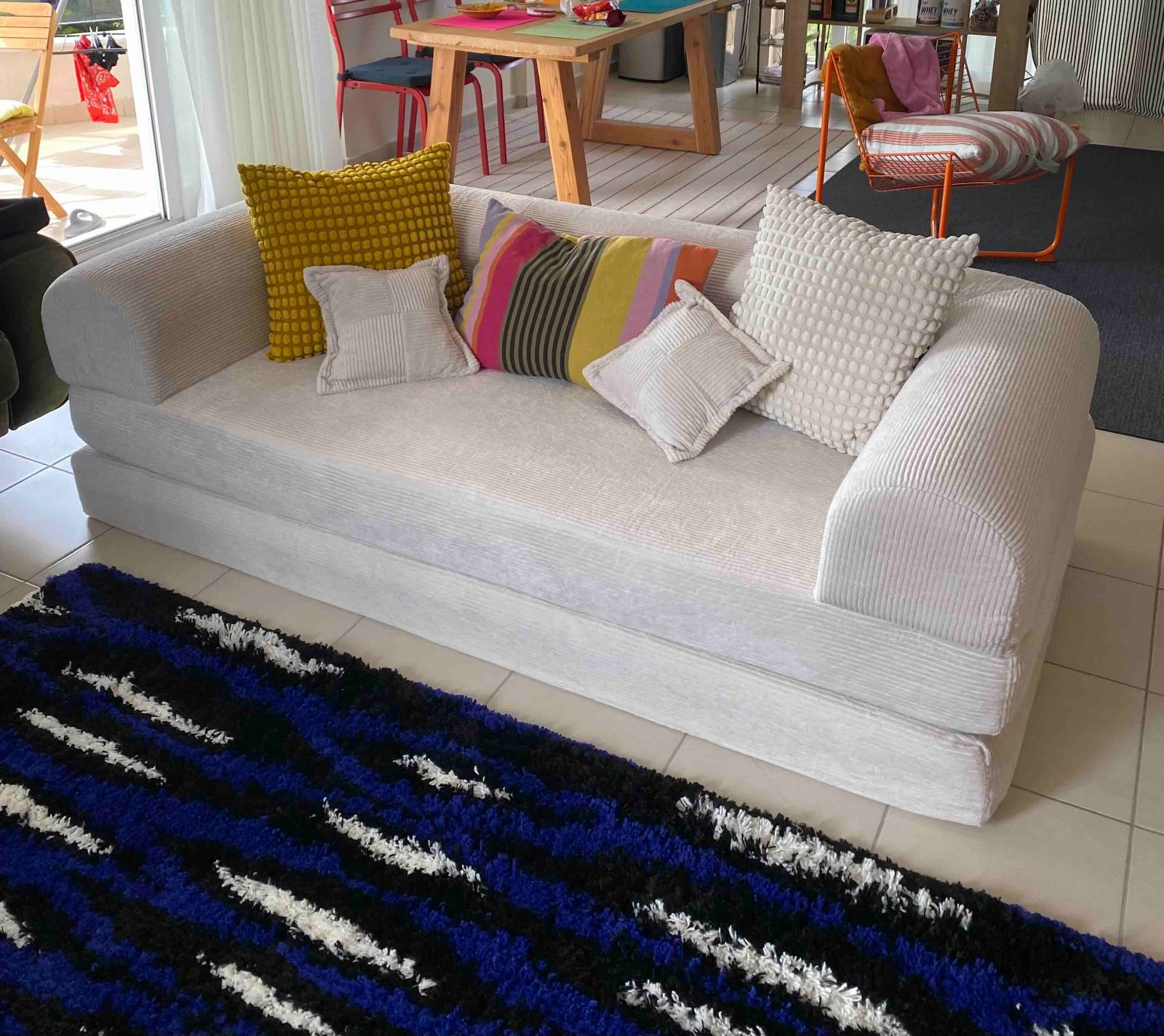 Absolutely. Thanks to its modular design, you can adjust the setup however you like: an L-shaped corner, a straight sofa, or an open lounge arrangement.